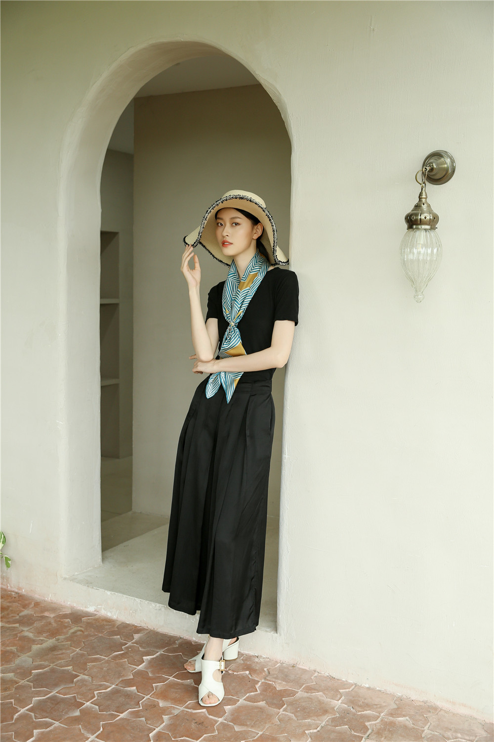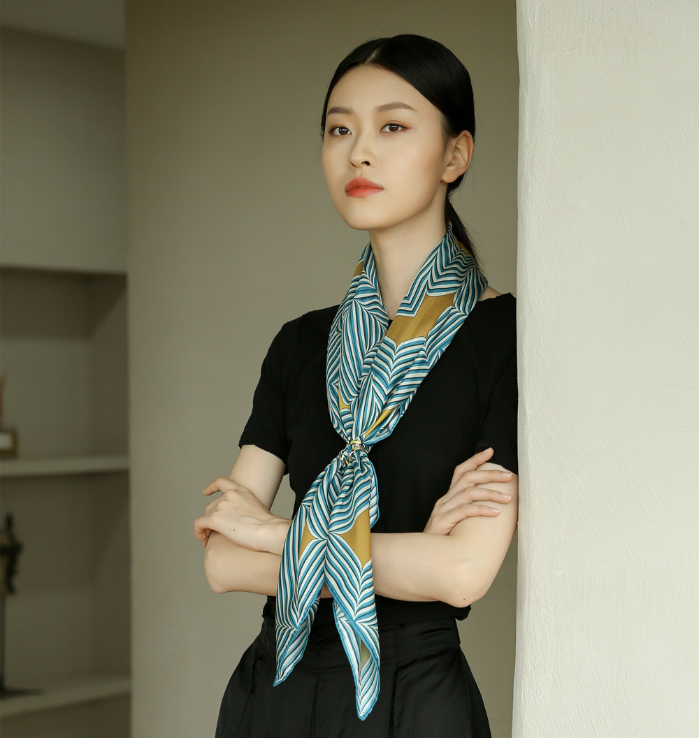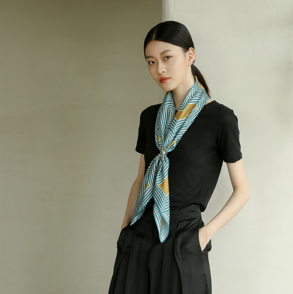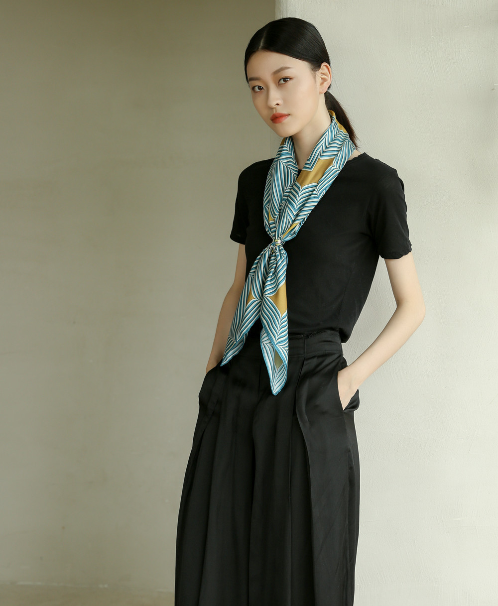 首元にさりげなく巻くだけで、シンプルな装いを洗練された印象に格上げしてくれます。