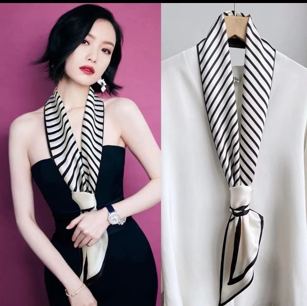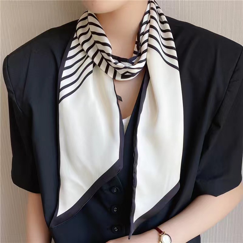 スカーフとしてはもちろん、バッグの持ち手に巻いたりベルト代わりにしたりと、アレンジ次第で装いの幅が広がります。