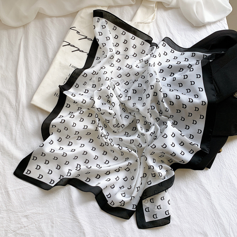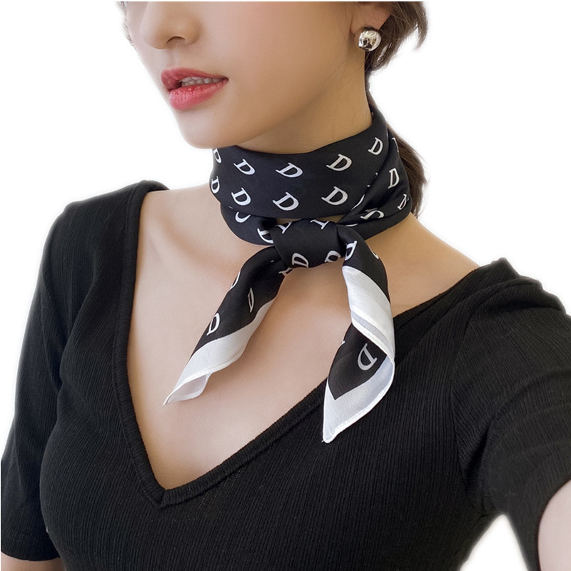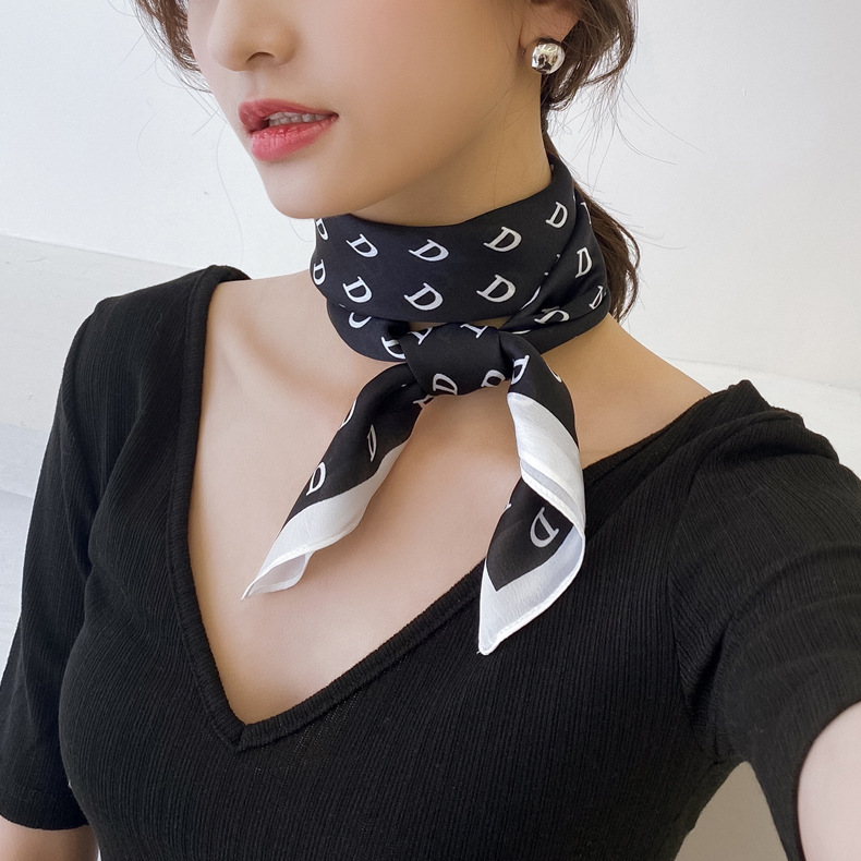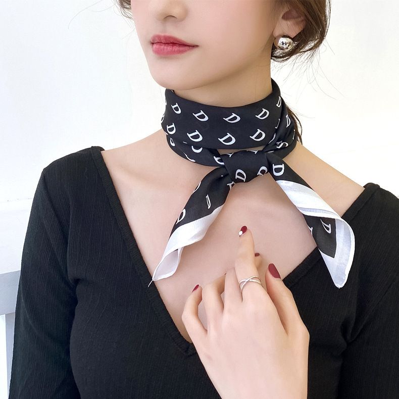 シンプルな装いに洗練された印象を与える、アルファベット柄のミニスカーフです。