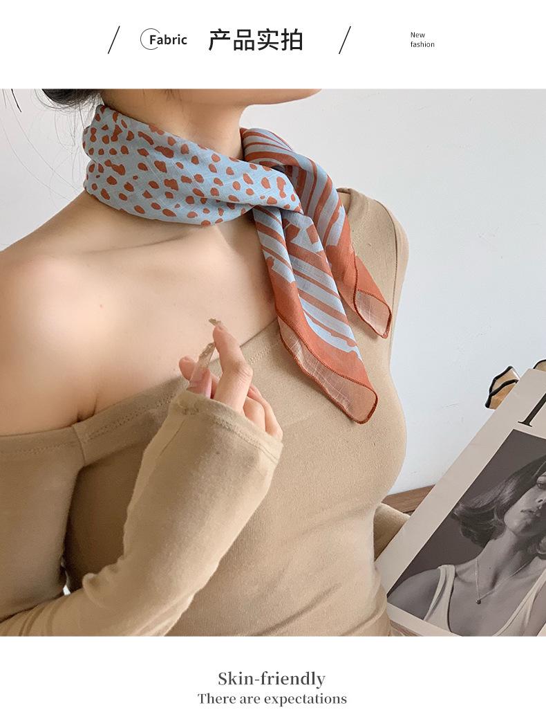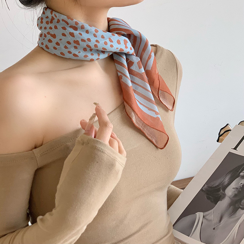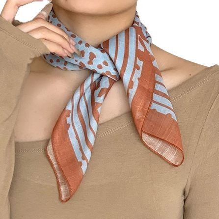 正方形の形状で様々な巻き方が楽しめ、首に巻くだけでなくバッグのアクセントとしても活躍します。