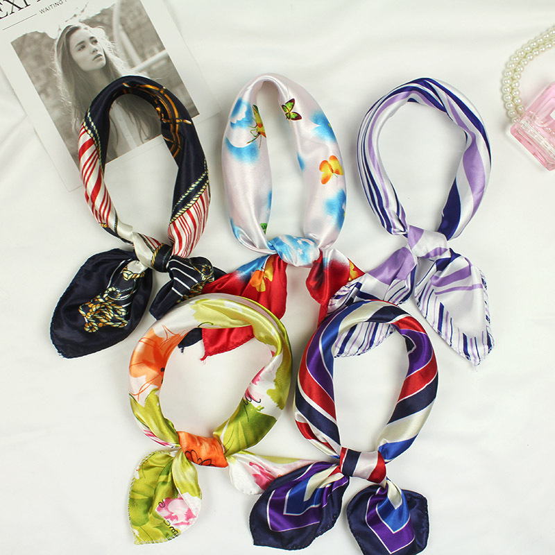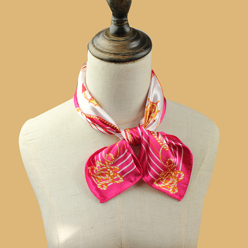 滑らかで光沢のある質感が上品な印象を演出し、首元に巻くだけでなくバッグの飾りやヘアアクセサリーとしても活躍します。