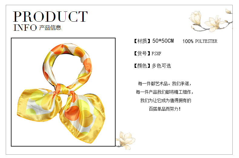 正方形の使いやすい形状で、様々なアレンジが可能なスカーフです。