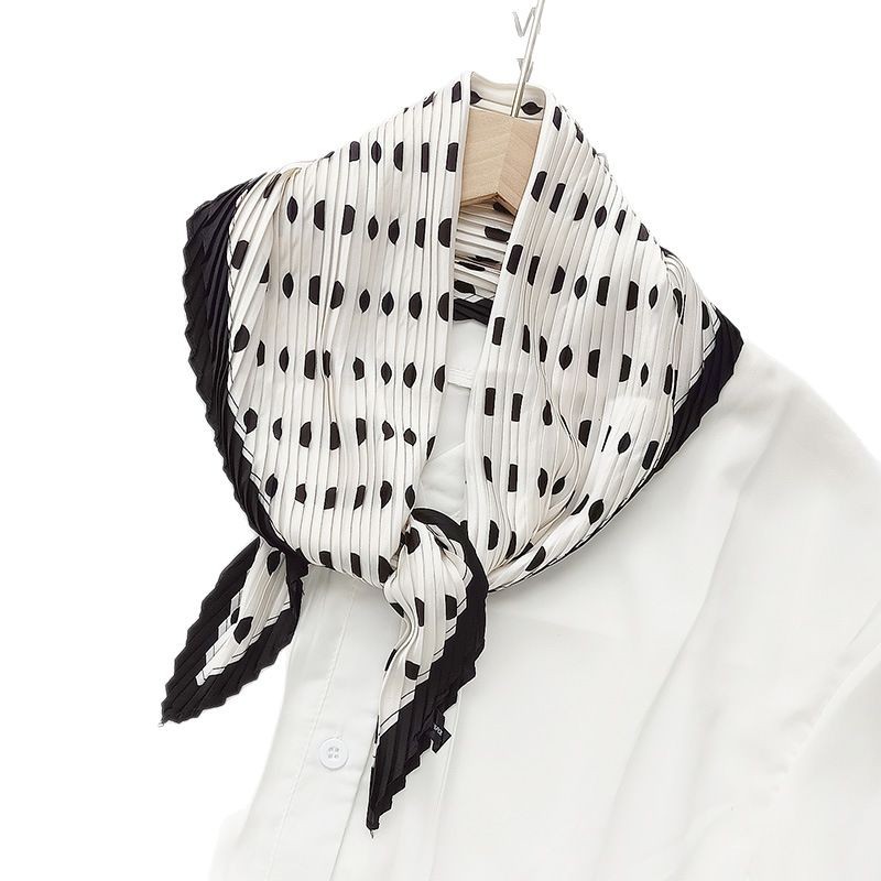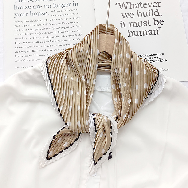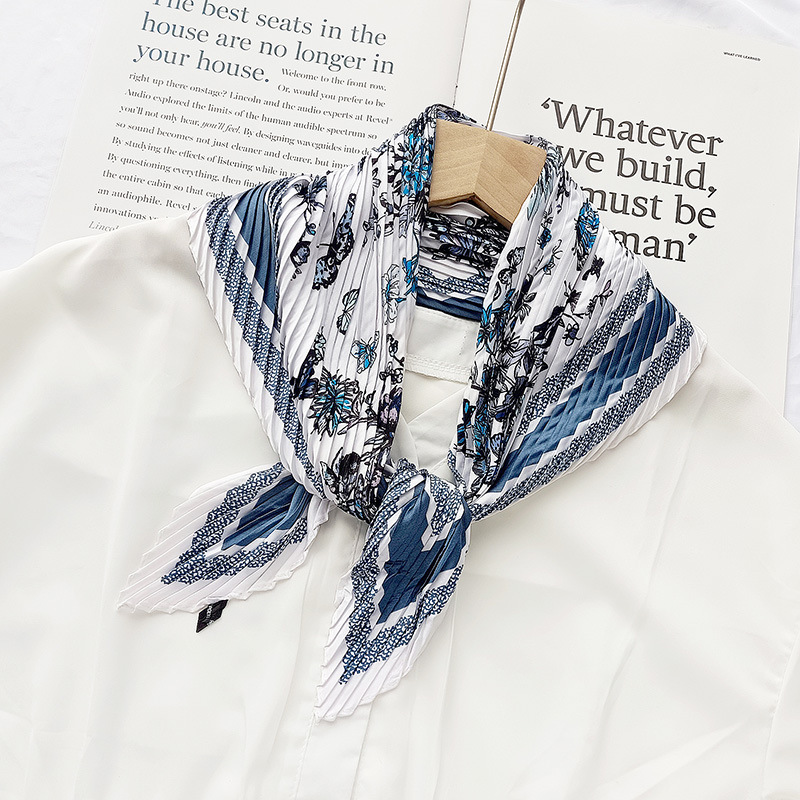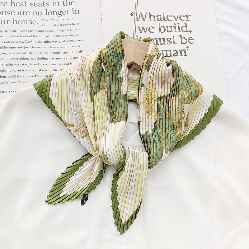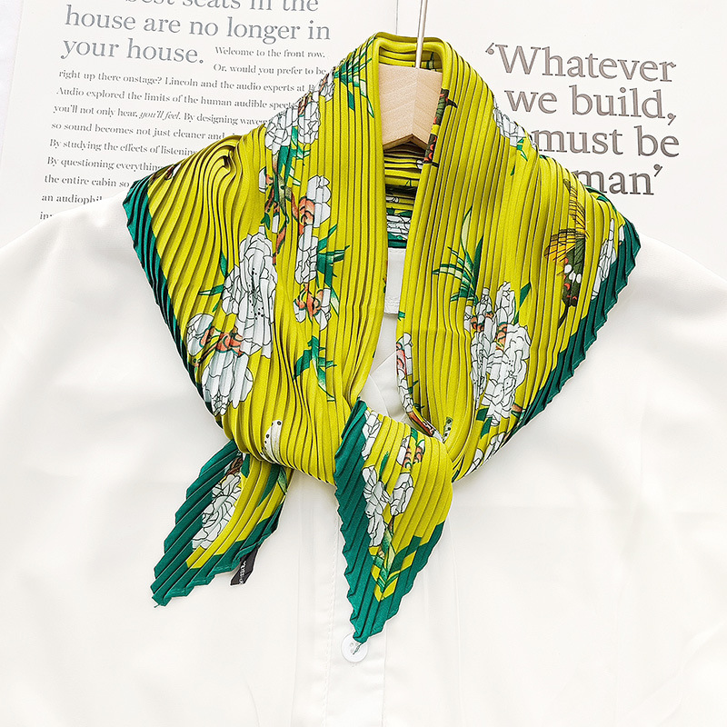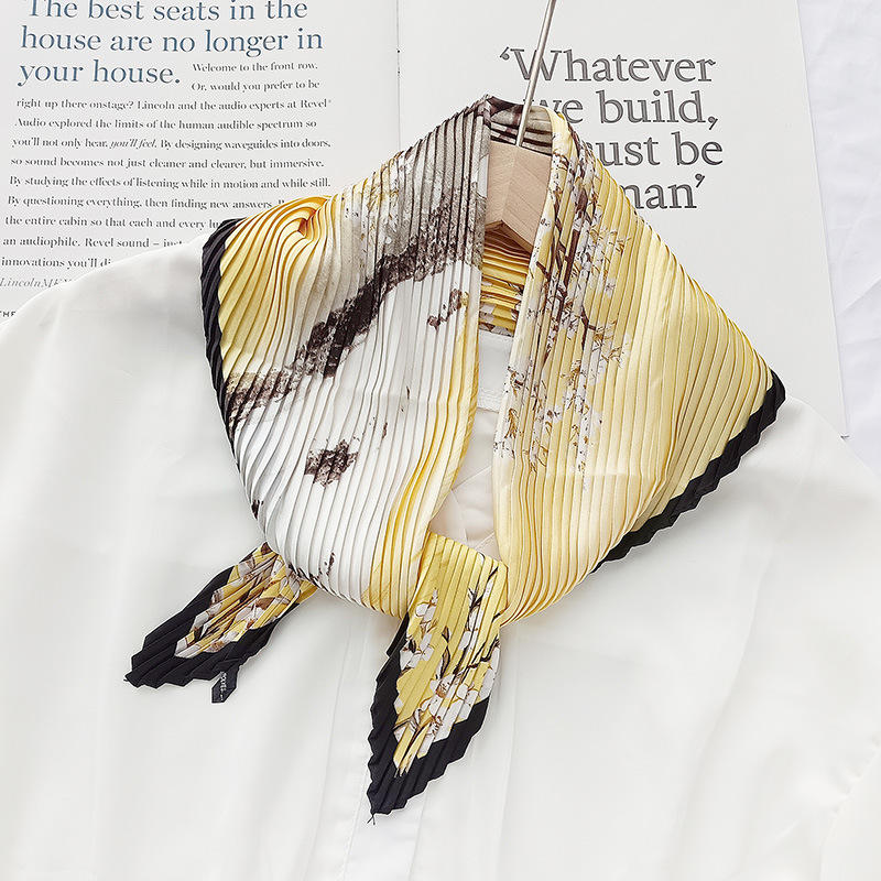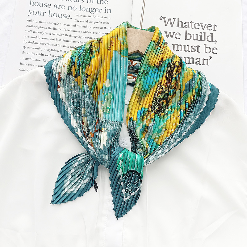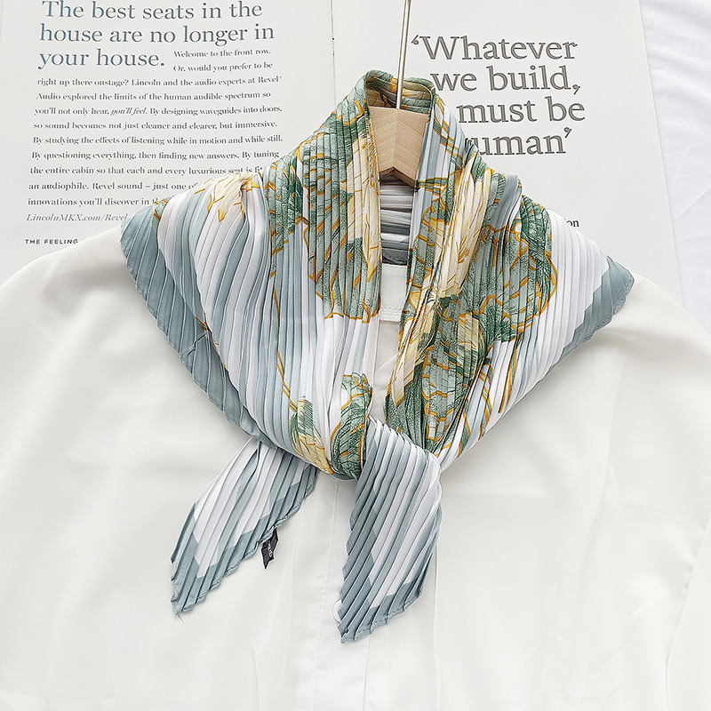 立体的なプリーツ加工が美しいシルクスカーフです。