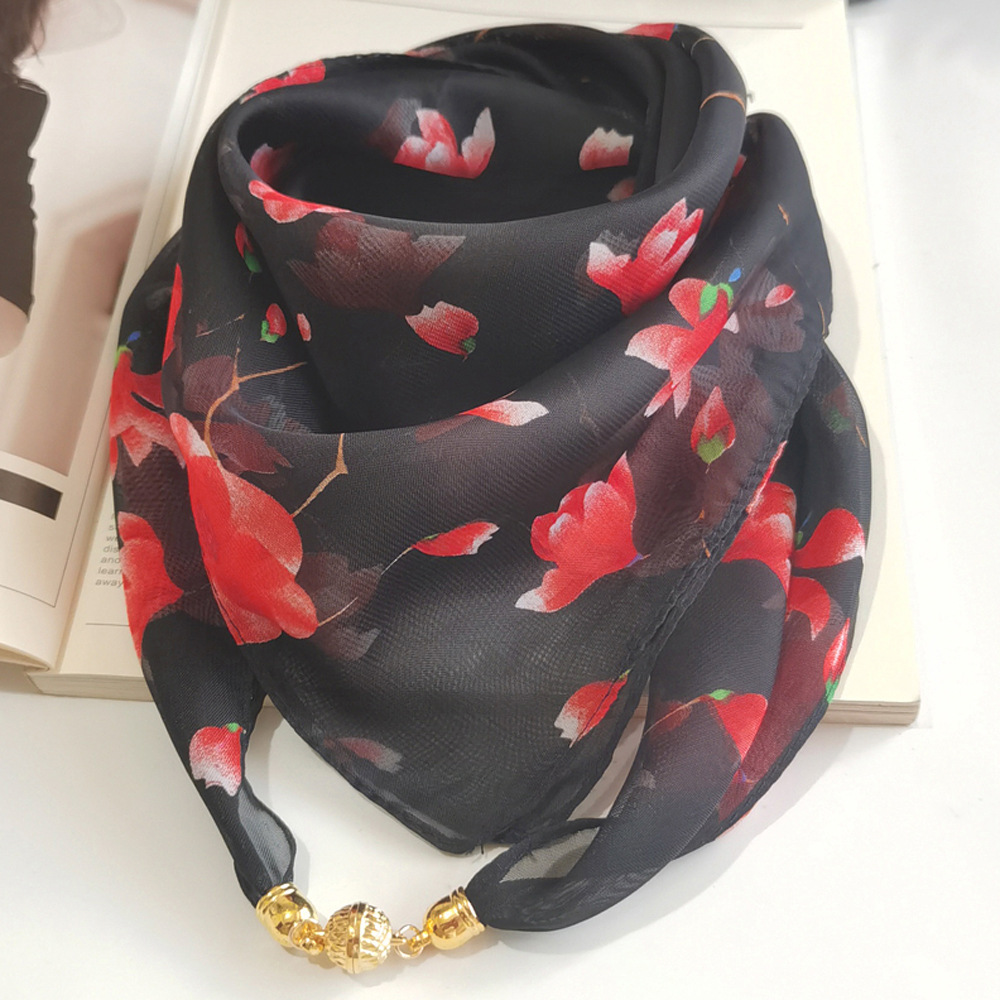 優雅なチューリップの花柄が描かれたシフォン素材のスカーフです。