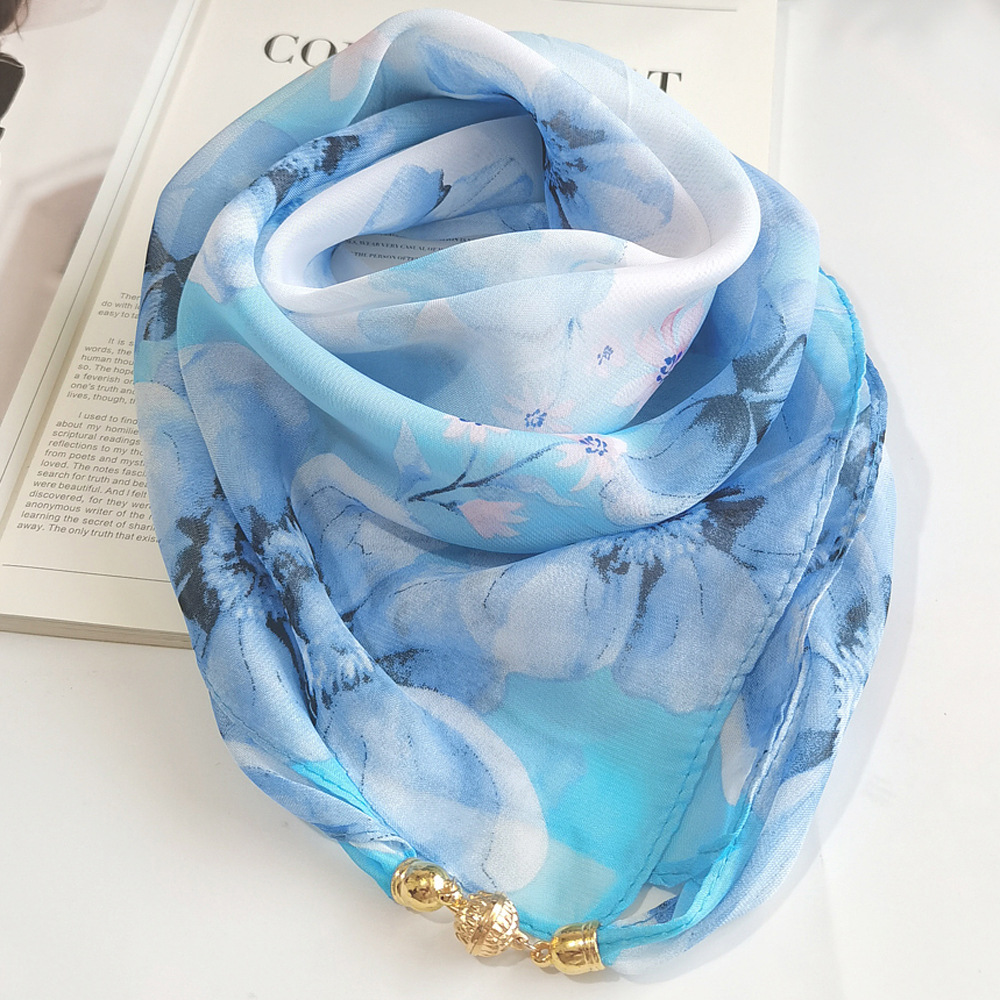 透け感のある軽やかな生地が春らしい雰囲気を演出し、首元を華やかに彩ります。