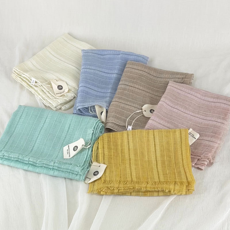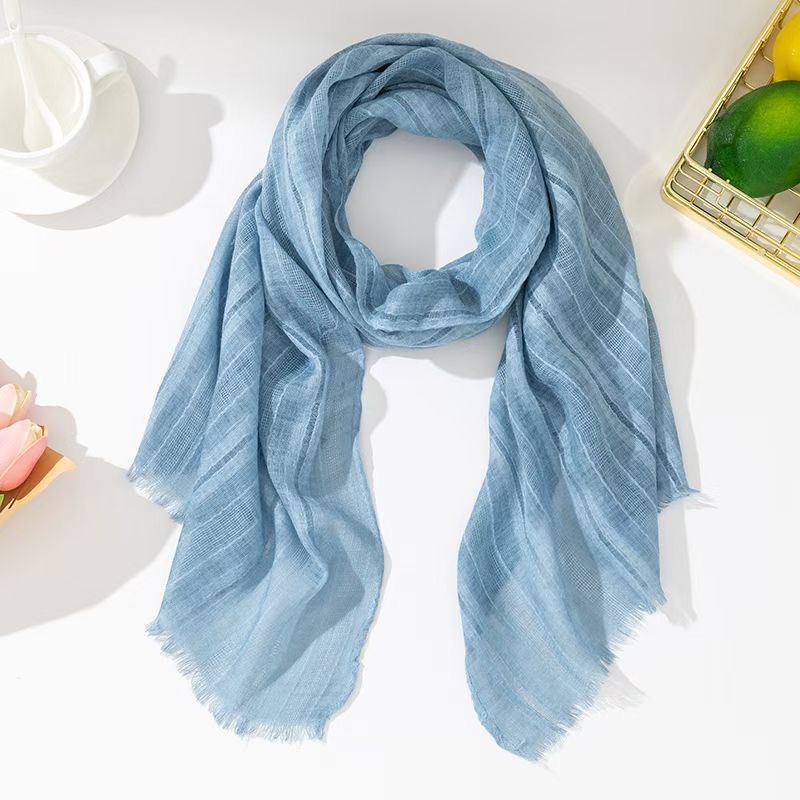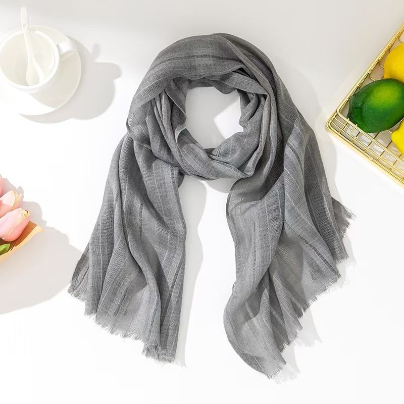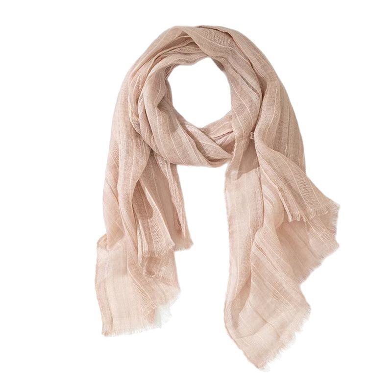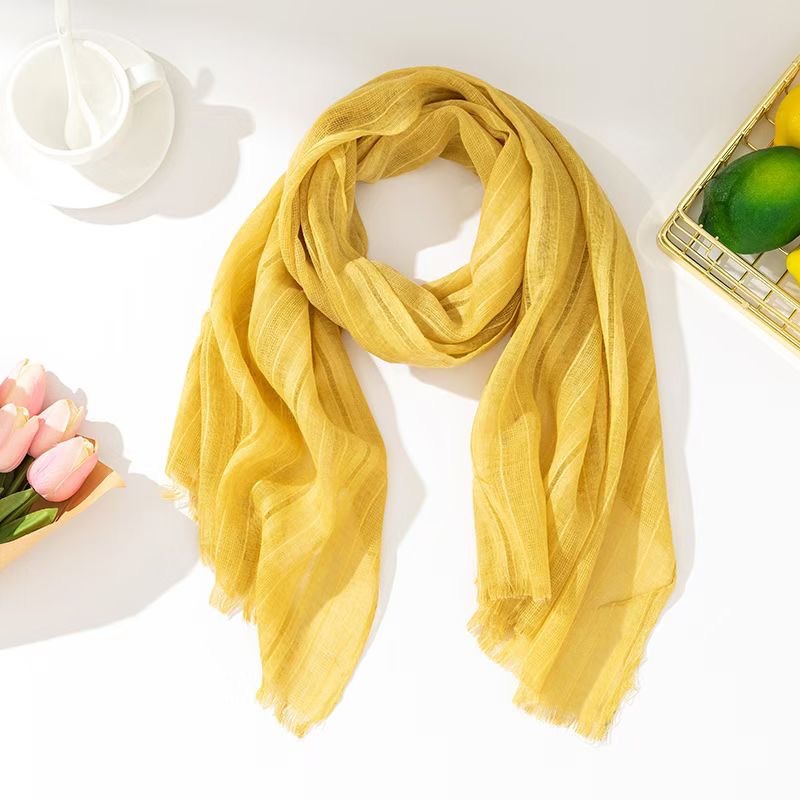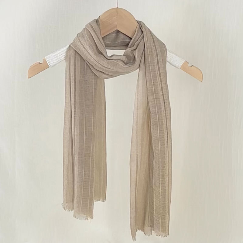 軽やかで透け感のある生地は、首元に何度も巻いても重くならず、春夏の装いに最適です。