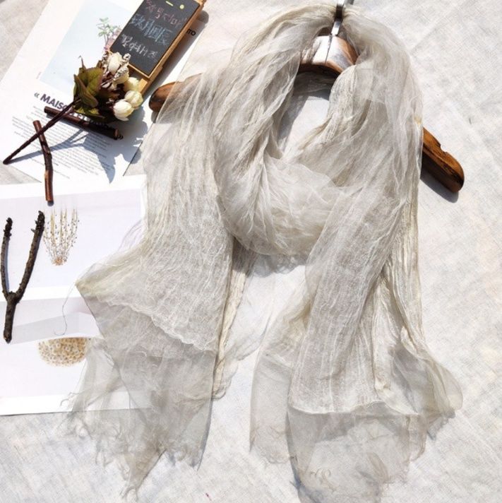 軽やかで透け感のある生地は春夏の装いに爽やかさを添え、フリンジ仕上げが優雅な印象を演出します。