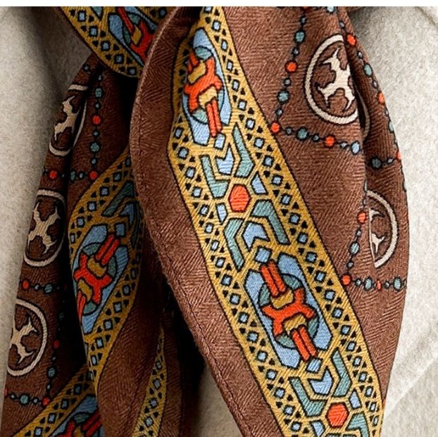 日常使いから特別な日まで、幅広いシーンで活躍する洗練されたスカーフです。
