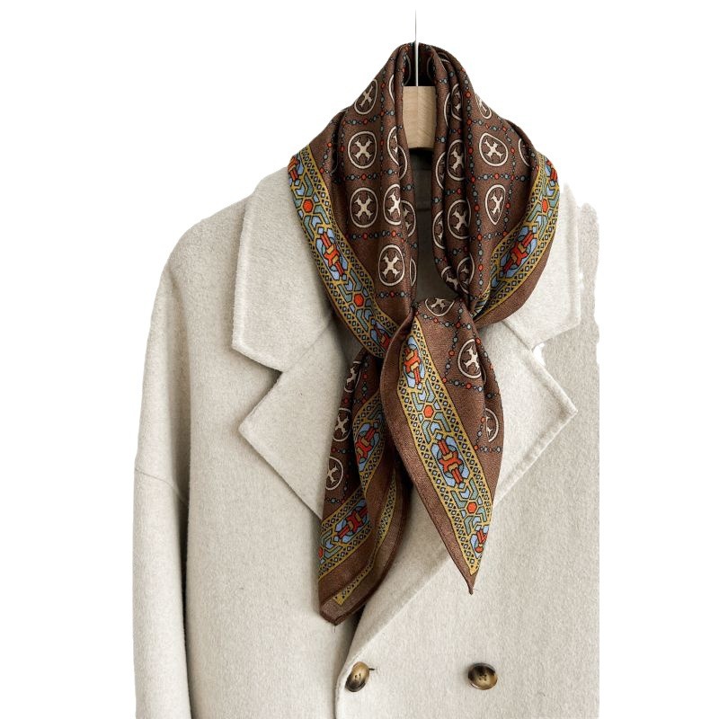 クラシカルなメダリオン柄が全面に施された上品なシルクスカーフです。