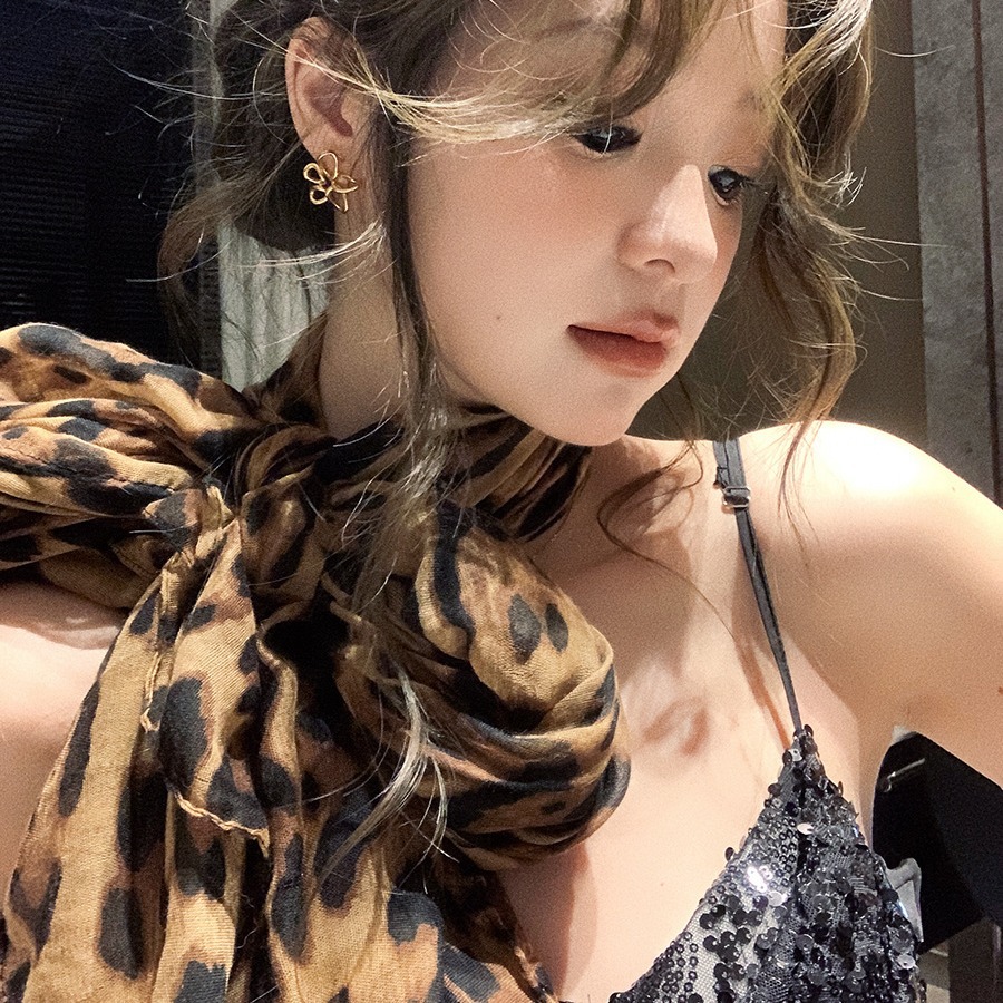 野性的な豹柄がおしゃれな大判スカーフです。
