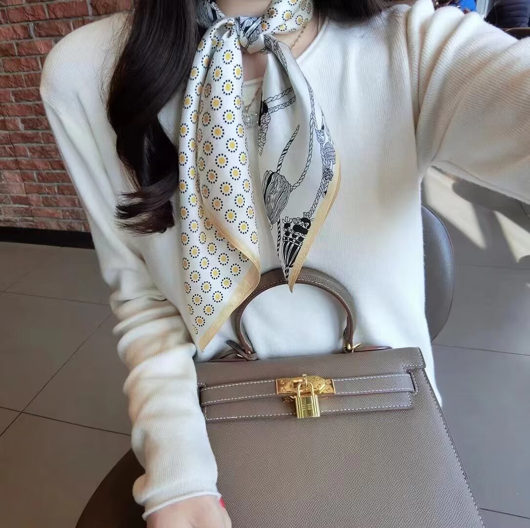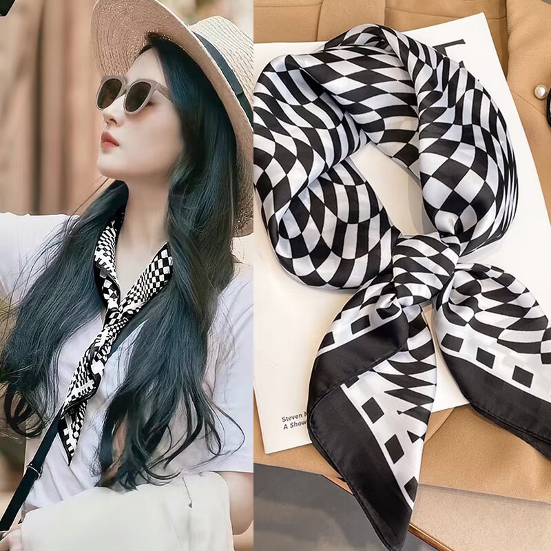 首元に巻くだけでコーディネートのアクセントになり、バッグの持ち手に結んでも華やかな印象を演出できます。